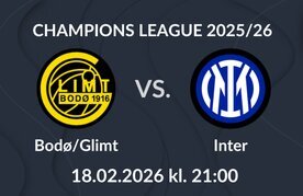 Første kamp i Champions League play-off fasen mellom Bodø/Glimt og Inter spilles på Aspmyra på onsdag 18. februar 2026 med avspark kl. 21.00 norsk tid.
